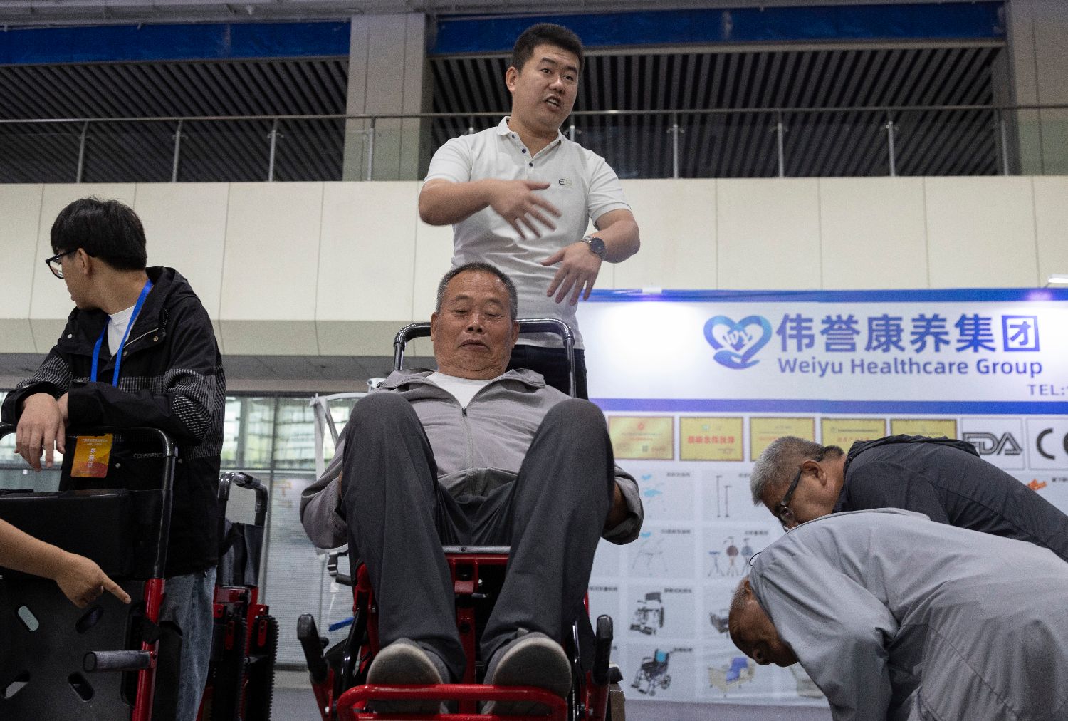此外,针对老年群体的智能化产品也瞄准了更具体的生活场景需求。展区内,一款爬楼机吸引老年人体验。工作人员介绍,该产品主要面向行动不便,且居住小区没有电梯的老年人,其电动系统可以辅助老年人上下楼梯,加长款的履带可适应不同间距的楼梯。