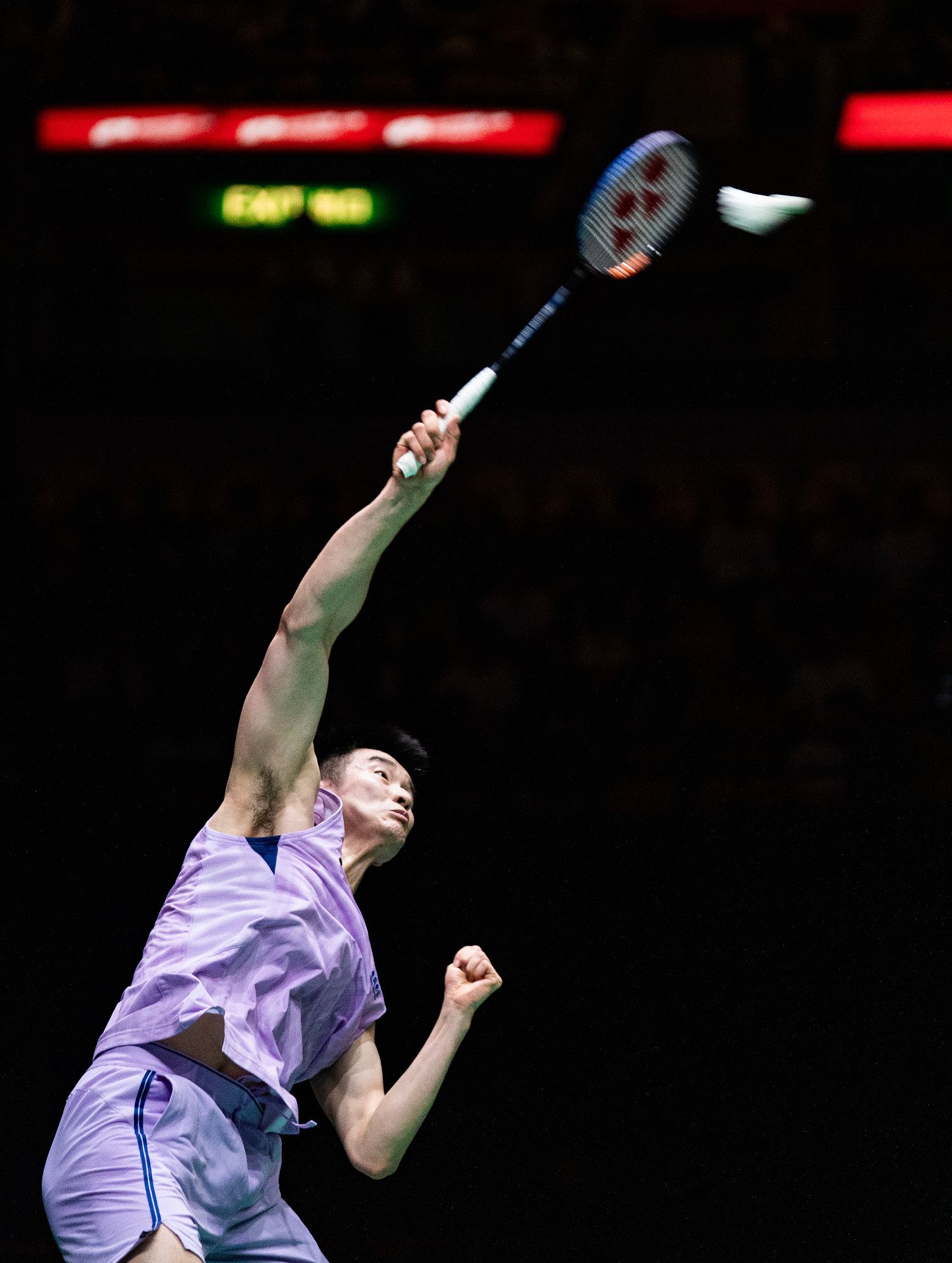 9月14日,2025年中国香港羽毛球公开赛各项决赛在位于红磡的香港体育馆举行。图为李诗沣在男单决赛中扣杀。(图片来源:中新社)