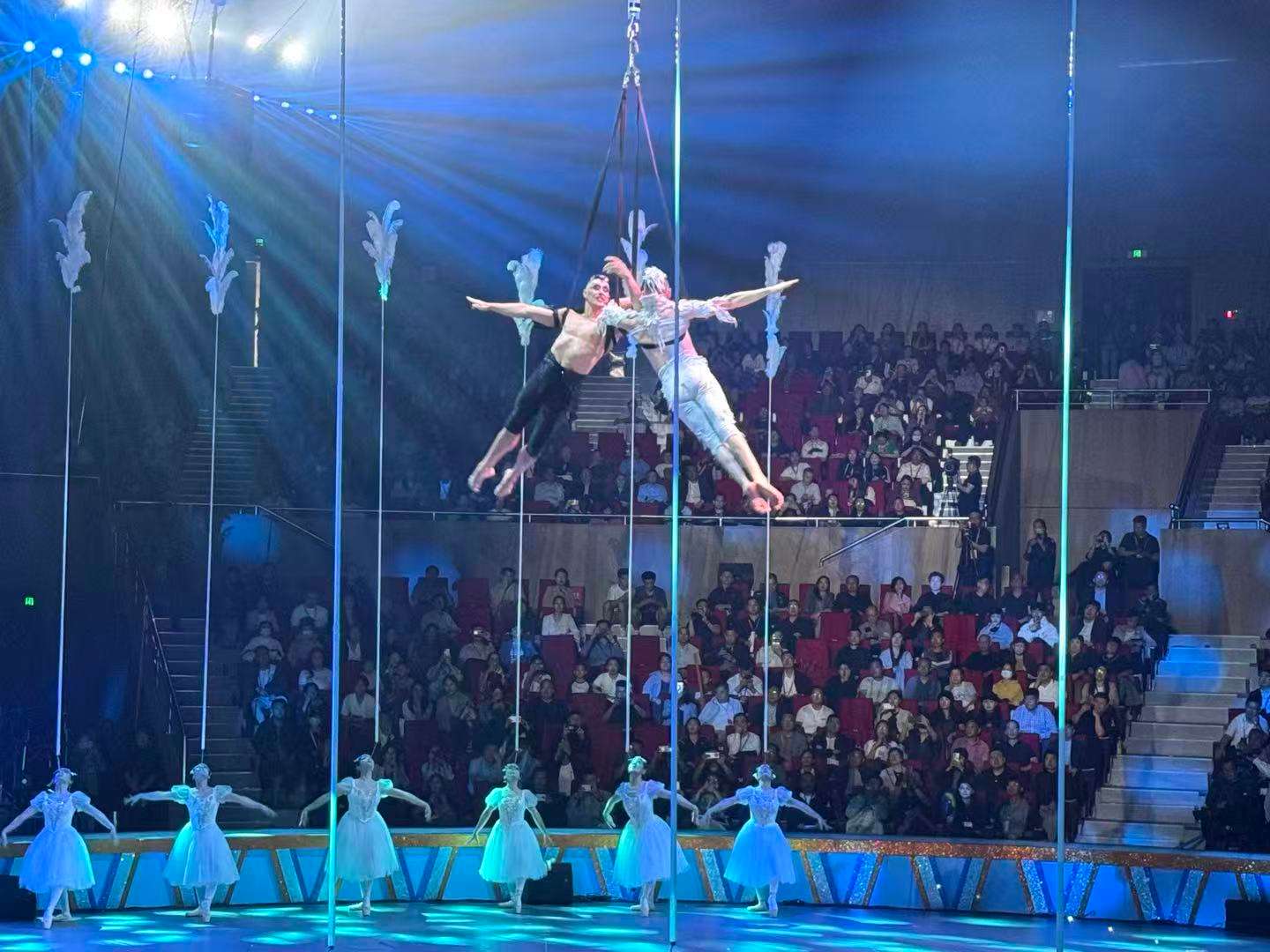 中新社报道,北京时间9月28日晚,中外杂技艺术家带来精彩的演出《梦·吴桥》,高超的技艺、精彩的表演让观众惊叹不已,掌声连连。