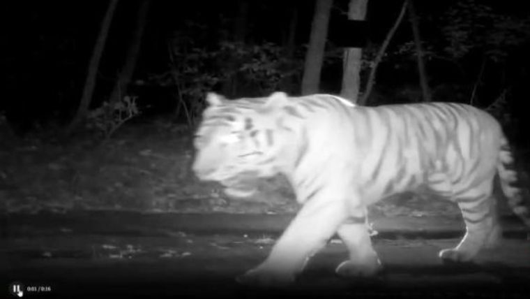 东北虎豹国家公园东宁片区工作人员整理“天地空”视频素材时发现野生东北虎影像。(图片来源:中新网/东宁市委宣传部供图)
