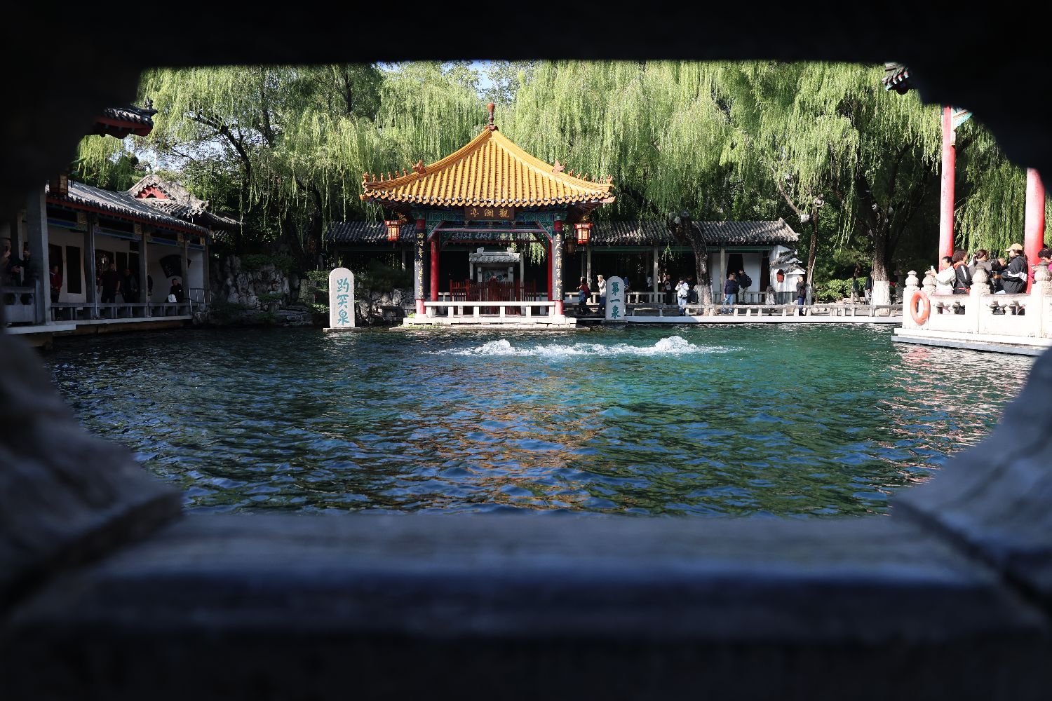 当天,在趵突泉园区,三股泉水喷雪溅玉,势如鼎沸,引得市民游客竞相站上“C位”,用手机、相机捕捉这一自然奇观。