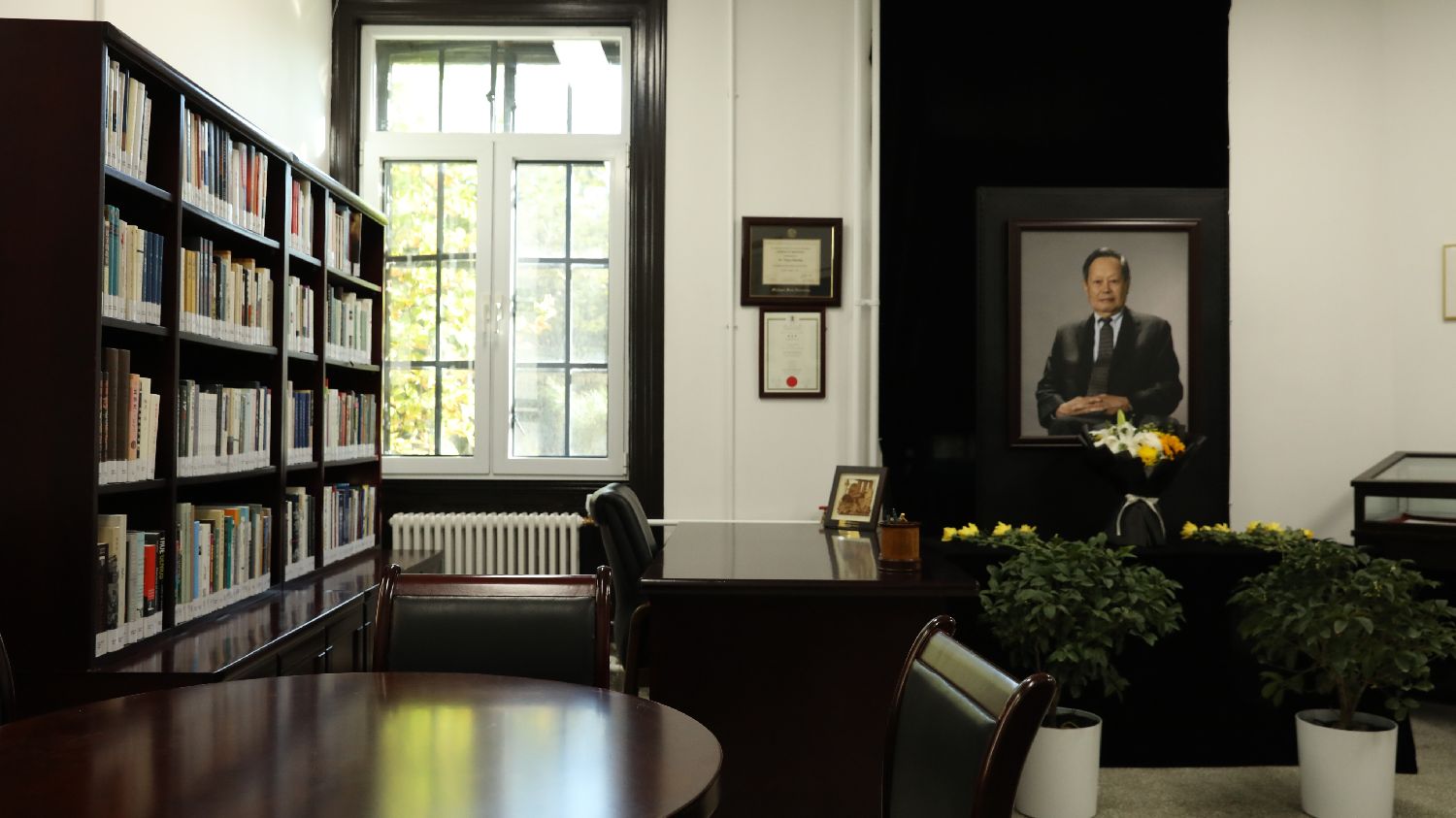 10月19日起,位于清华大学图书馆老馆219室的杨振宁书屋正式开放。(图片来源:中新社)