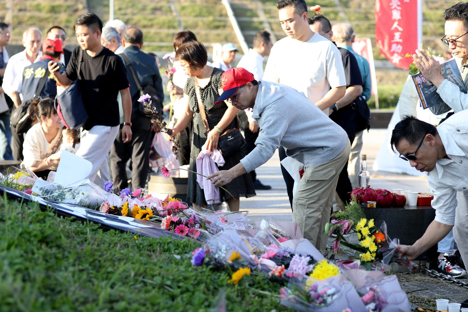 秋祭现场,许多民众自发献花寄托哀思。来自台南的大学一年级学生蔡胜全受访说,他曾主动探寻这段被台湾主流叙事埋没的历史,如今更理解先辈舍己为人、追求统一的崇高信念。