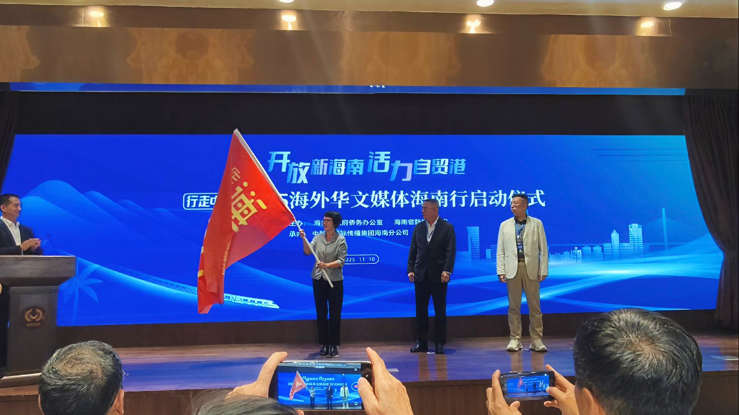 海南省委统战部常务副部长康拜英在启动仪式上致辞。她指出,海南自贸港将于今年12月18日启动全岛封关运作,届时人流、物流、资金流、数据流等要素流动将更加顺畅,为全球资源配置和产业创新提供更广阔的平台。康拜英表示,海外侨胞和华文媒体是推动海南高质量发展的重要力量,希望媒体代表深入走访,以独特视角和生动报道,向世界展示海南的开放活力与发展机遇。