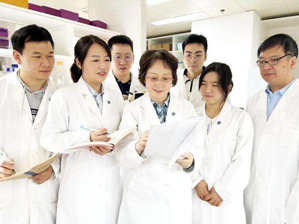 雷群英(前排居中)与团队在实验室讨论。(图片来源:北京《中国青年报》)