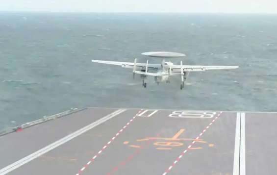 多型舰载机完成了多架次弹射起飞和着舰训练。(图片来源:大陆央视)