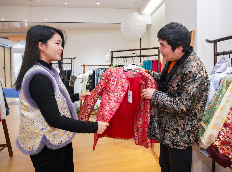 “我们还与设计师合作,为顾客量身定制‘新中式’服装。同时开设网店,方便大家线上购买。”杨仕嘉说,店里还定期举办沙龙、分享会等活动,介绍传统服饰的面料和工艺,增进大家对服饰文化的了解。