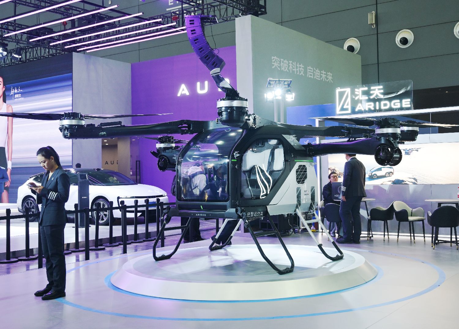 小鹏汇天“陆地航母”分体式飞行汽车的亮相亦十分吸睛。“这是全球首款面向个人用户量产交付的飞行汽车产品,采用‘陆行体+飞行器’分体设计。”汇天航空航天公司副总裁李锐说,位于广州的小鹏汇天飞行汽车量产工厂满产状态下,生产线每30分钟可下线一台飞行器。工厂已将汽车工业的流水线引入航空领域。