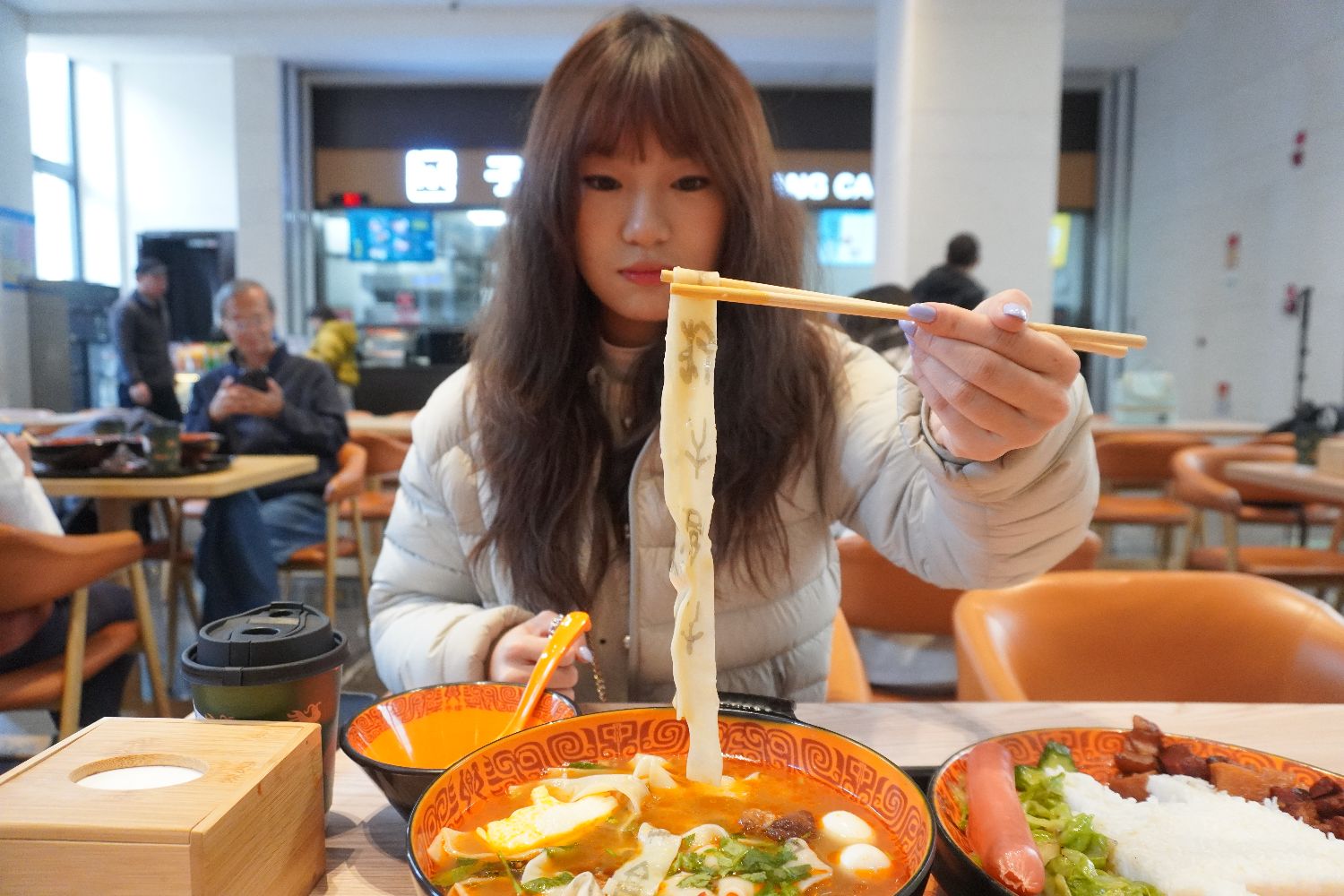 “大吉大利”“上岸成功”“日进斗金”“吉祥安康”……许多游客专程到子飨餐厅品尝印有吉祥甲骨文字的面条。