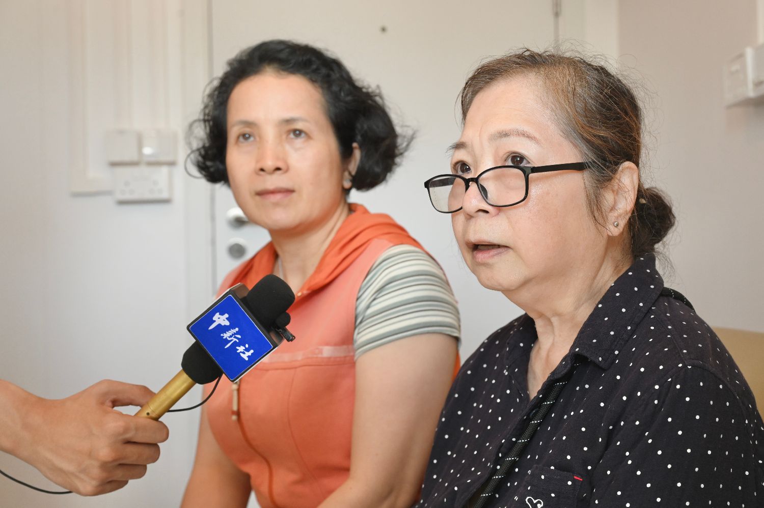 12月12日,街坊芬姐(右)和婷姐接受采访。(图片来源:中新社)