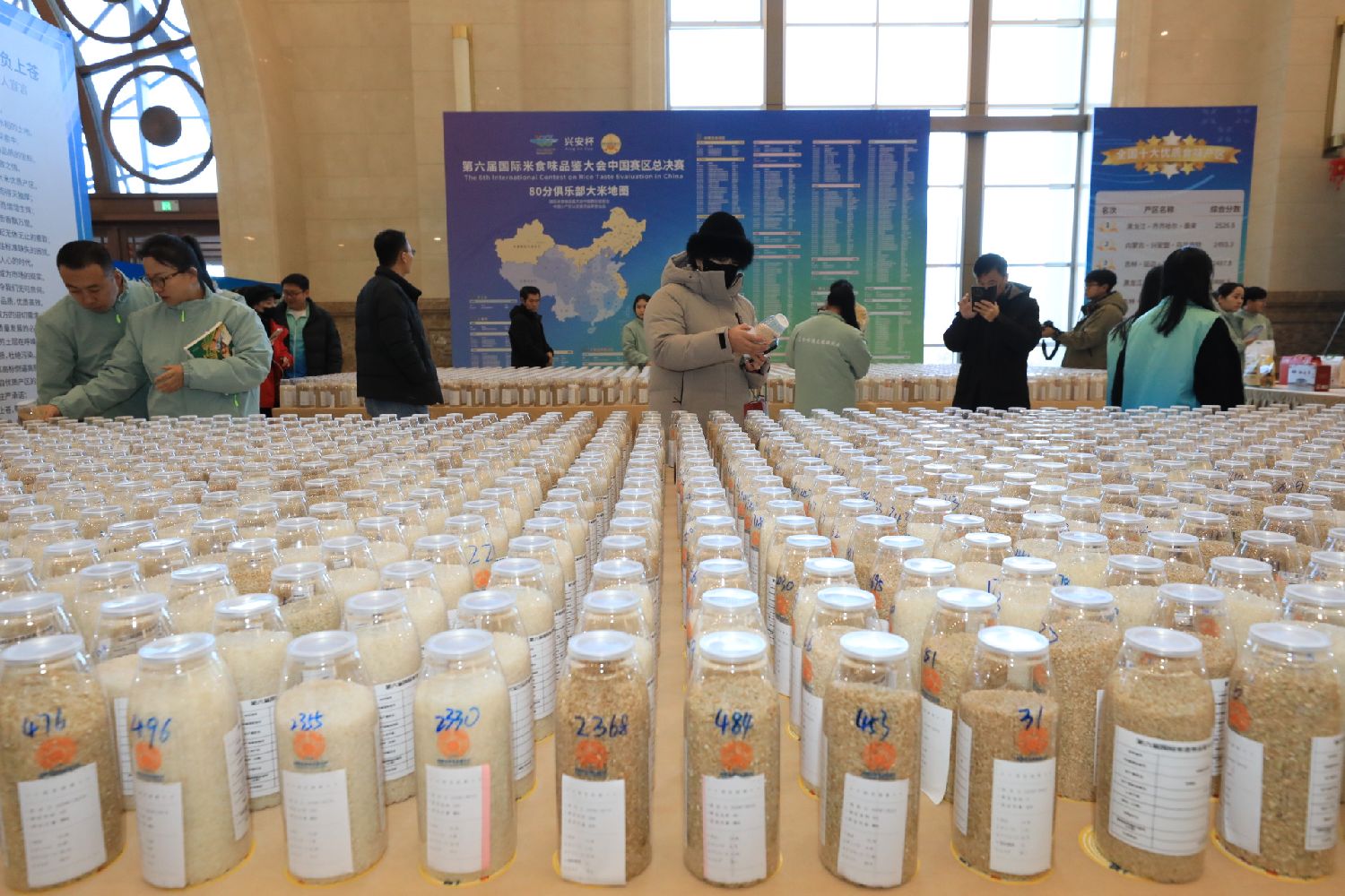 12月15日,内蒙古兴安盟,2378份米样参评第六届国际米食味品鉴大会中国赛区总决赛。(图片来源:中新社)