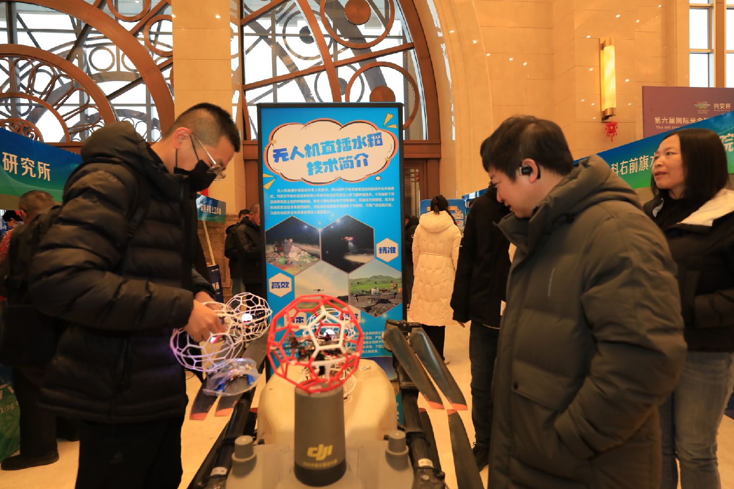 12月15日,内蒙古兴安盟,无人机直播水稻技术亮相兴安盟大米文化周。(图片来源:中新社)