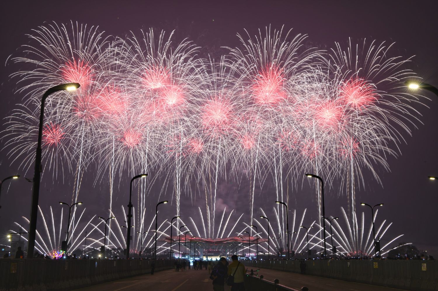 10月25日,在湖南浏阳举行的第六届浏阳焰火大会。(图片来源:中新社)