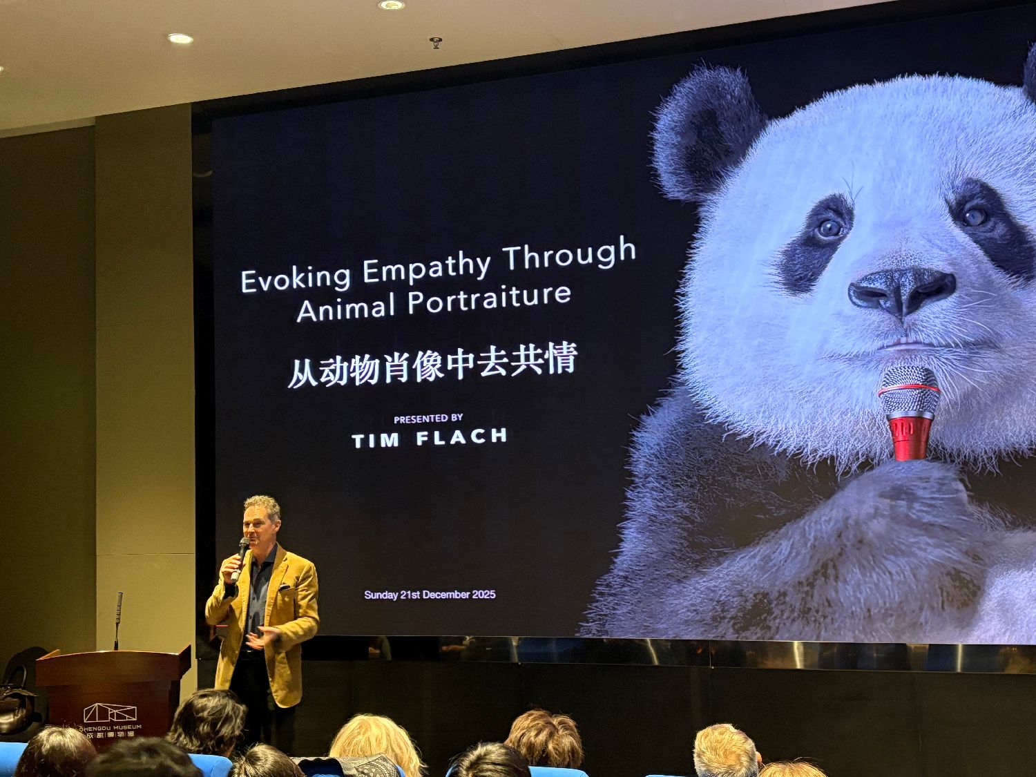 蒂姆·弗拉克也谈到了他与中国的不解之缘:不仅因为他的妻子是中国人,更源于他对中国生态保护的长期关注与记录。他曾多次深入中国云南、四川等地,记录大熊猫、金丝猴等珍稀物种的生存状态,用视觉语言讲述中国在生物多样性保护方面的故事与成就。他还出版了五本中文书籍,向中国读者介绍珍稀物种的生存故事与保护进展。