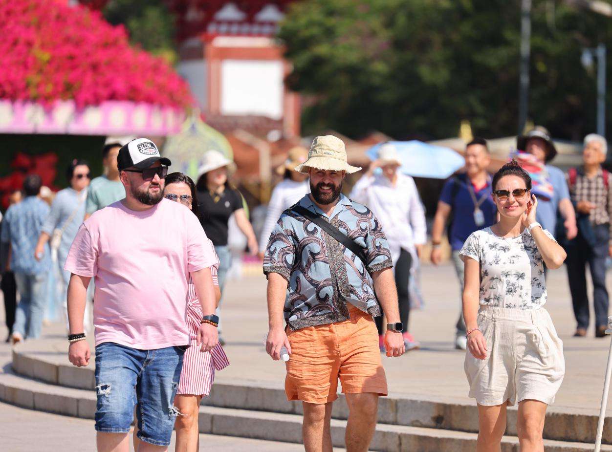 2026年1月1日,外国游客游览三亚南山文化旅游区。(图片来源:中新社)