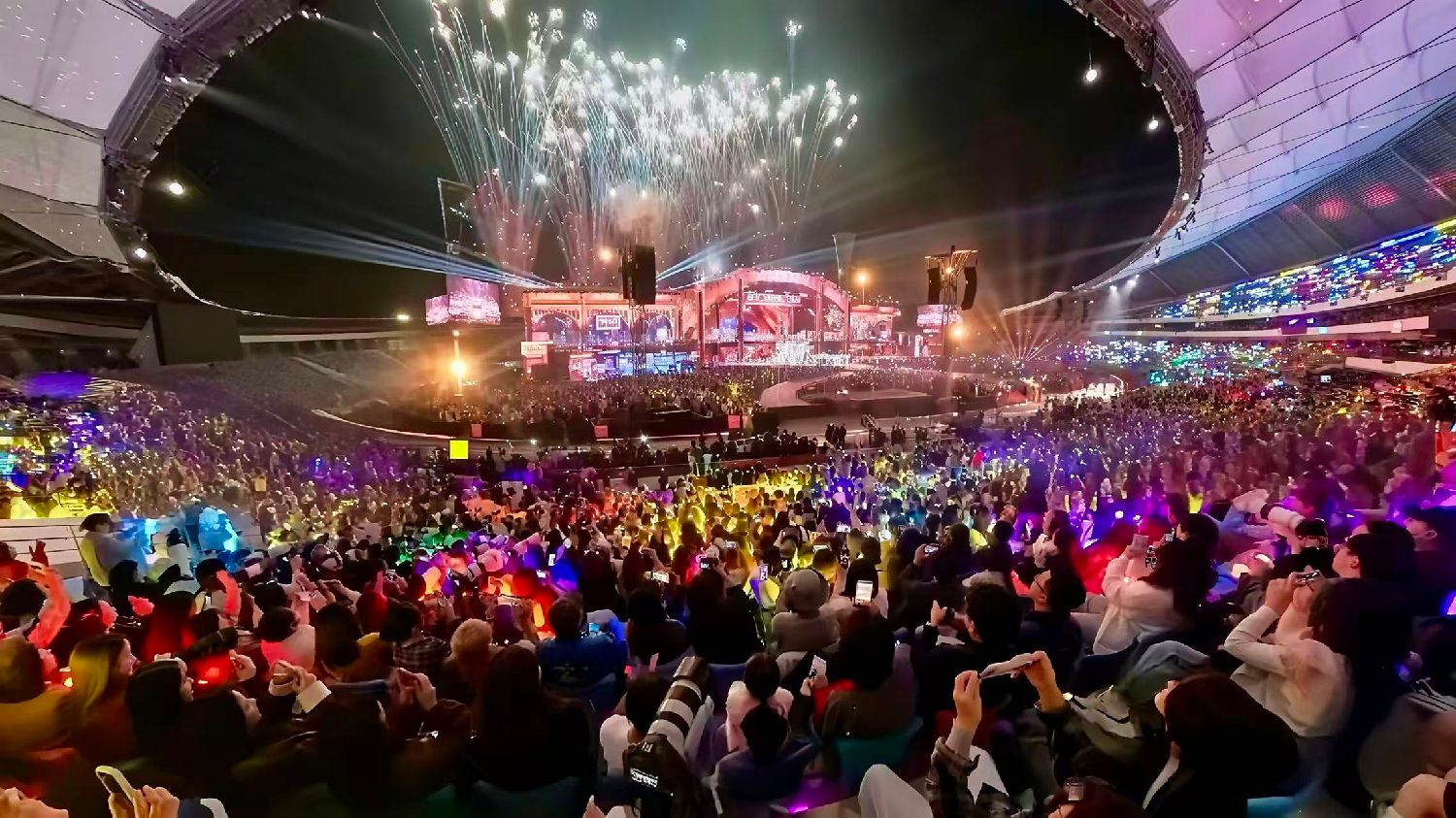 2025年12月31日晚,湖南卫视芒果TV跨年演唱会在海口五源河体育场举行,零点钟声敲响,全场观众共迎新年。(图片来源:中新社)