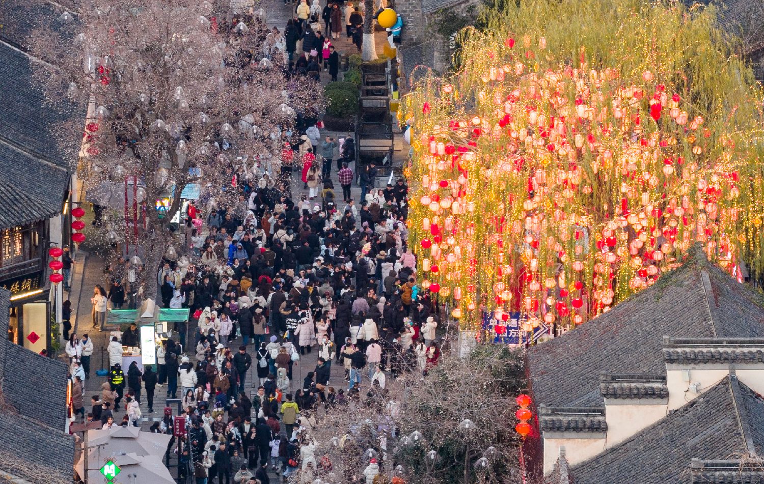 图为1月2日,游客在南京门东历史文化街区游玩。(图片来源:中新社)