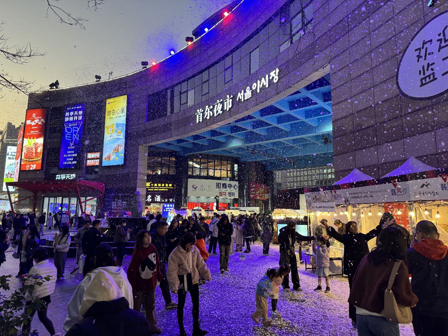 2026年年初,上海首尔夜市将整片中庭变成“冬日客厅”。(图片来源:中新社)