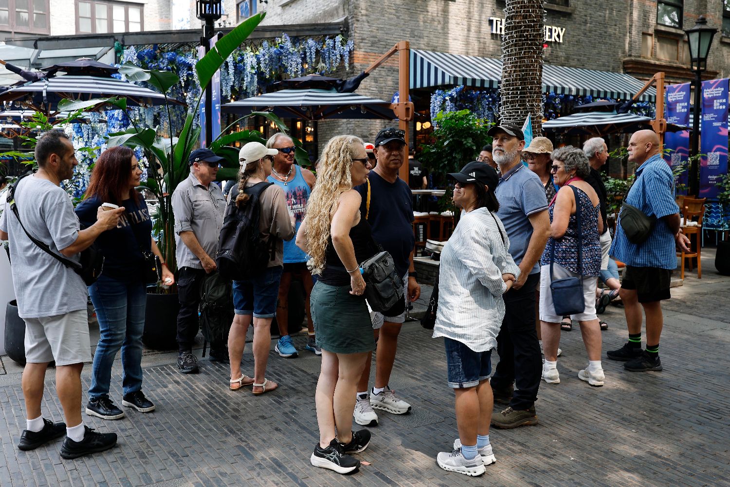 2025年6月4日,游客在上海新天地游玩。(图片来源:中新社)