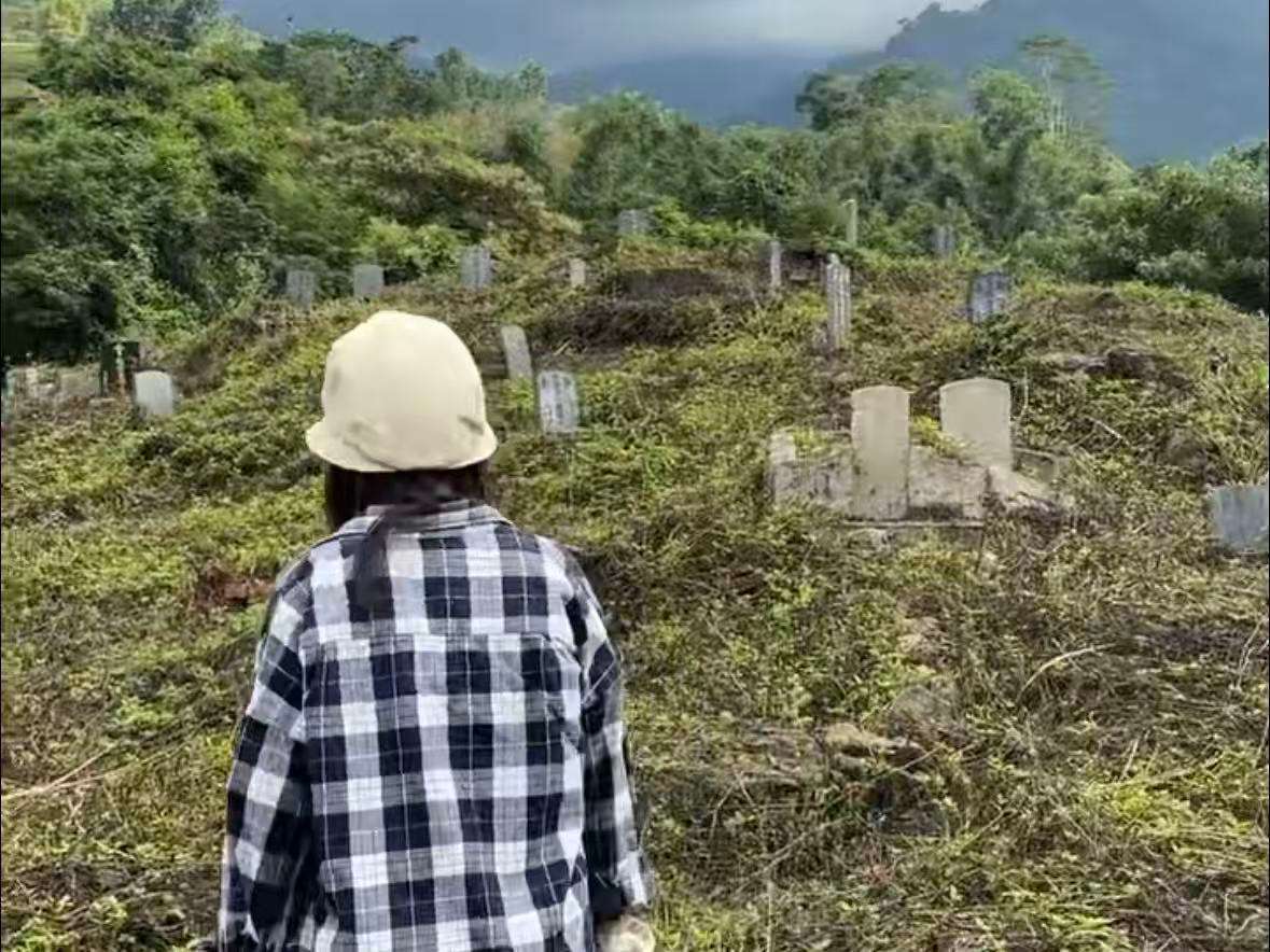 2025年10月,四川南充青年何娜在位于台湾阿里山的墓群中寻找山东老兵的墓地。(图片来源:中新社)