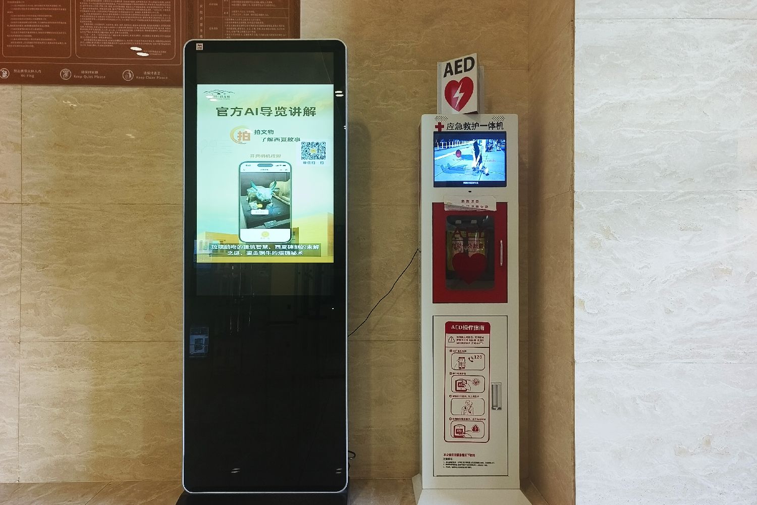 1月12日,在银川西夏陵景区,景区在关键点位配备了自动体外除颤器(AED)。(图片来源:中新社)