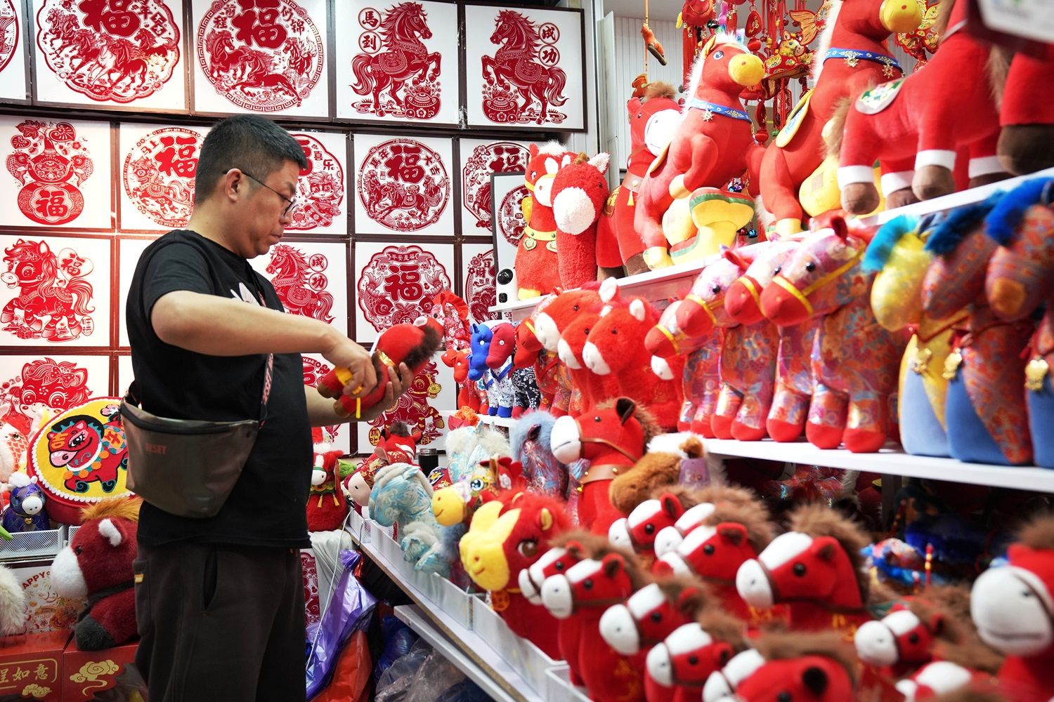 1月14日,消费者在北京百荣世贸商城挑选商品。(图片来源:中新社)