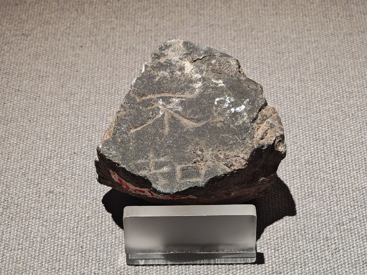 1月19日,“修学好古实事求是——典籍里的书院”展览开幕式在中国国家图书馆举行,图为现场展出的熹平石经《论语》残石。(图片来源:中新社)