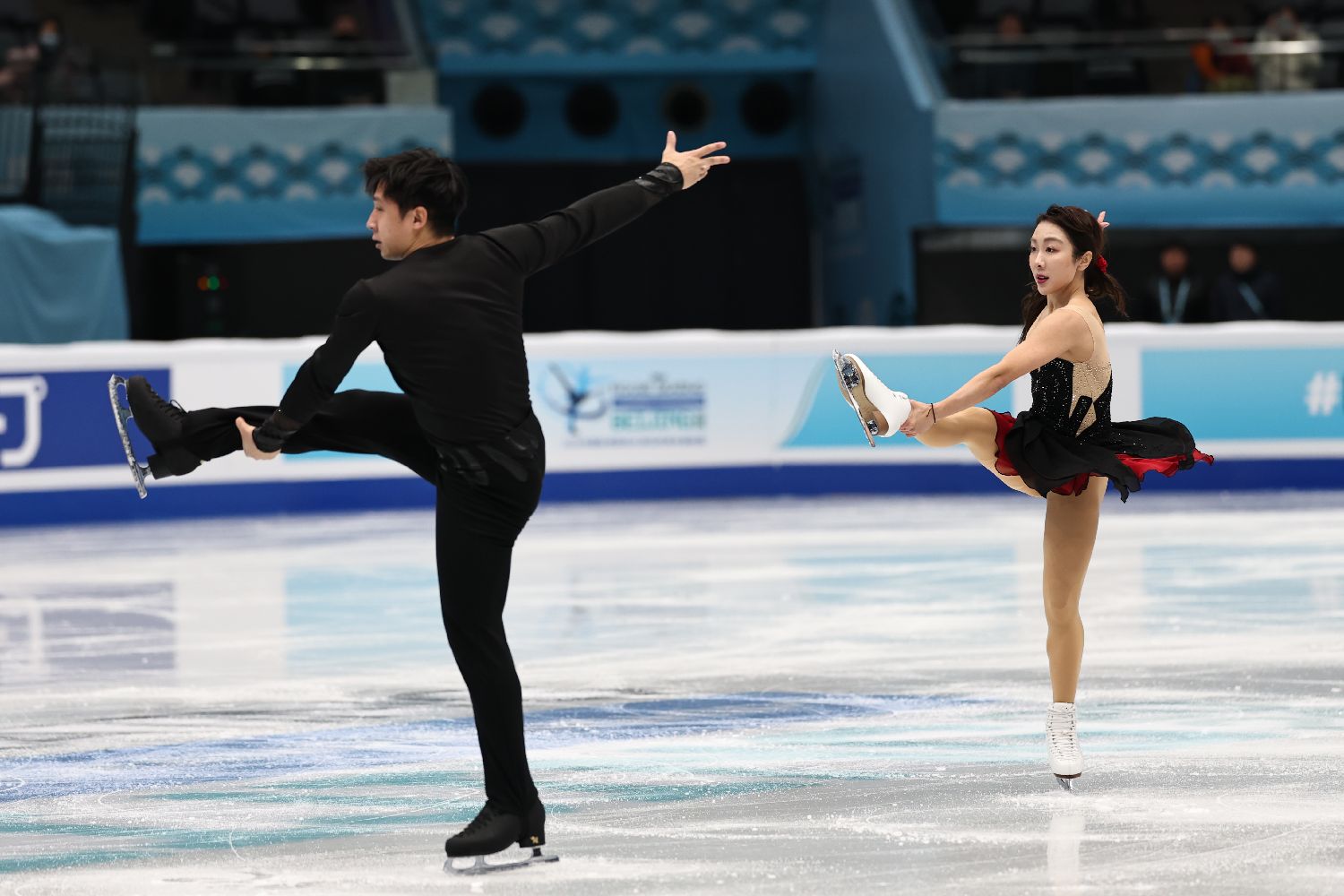 2026年国际滑联四大洲花样滑冰锦标赛22日在中国国家体育馆揭幕。北京冬奥会冠军隋文静/韩聪在双人滑短节目比赛中位居头名。