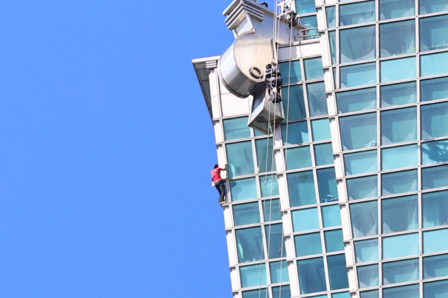 1月25日,艾利克斯·霍诺德登顶台北101。(图片来源:中新社)