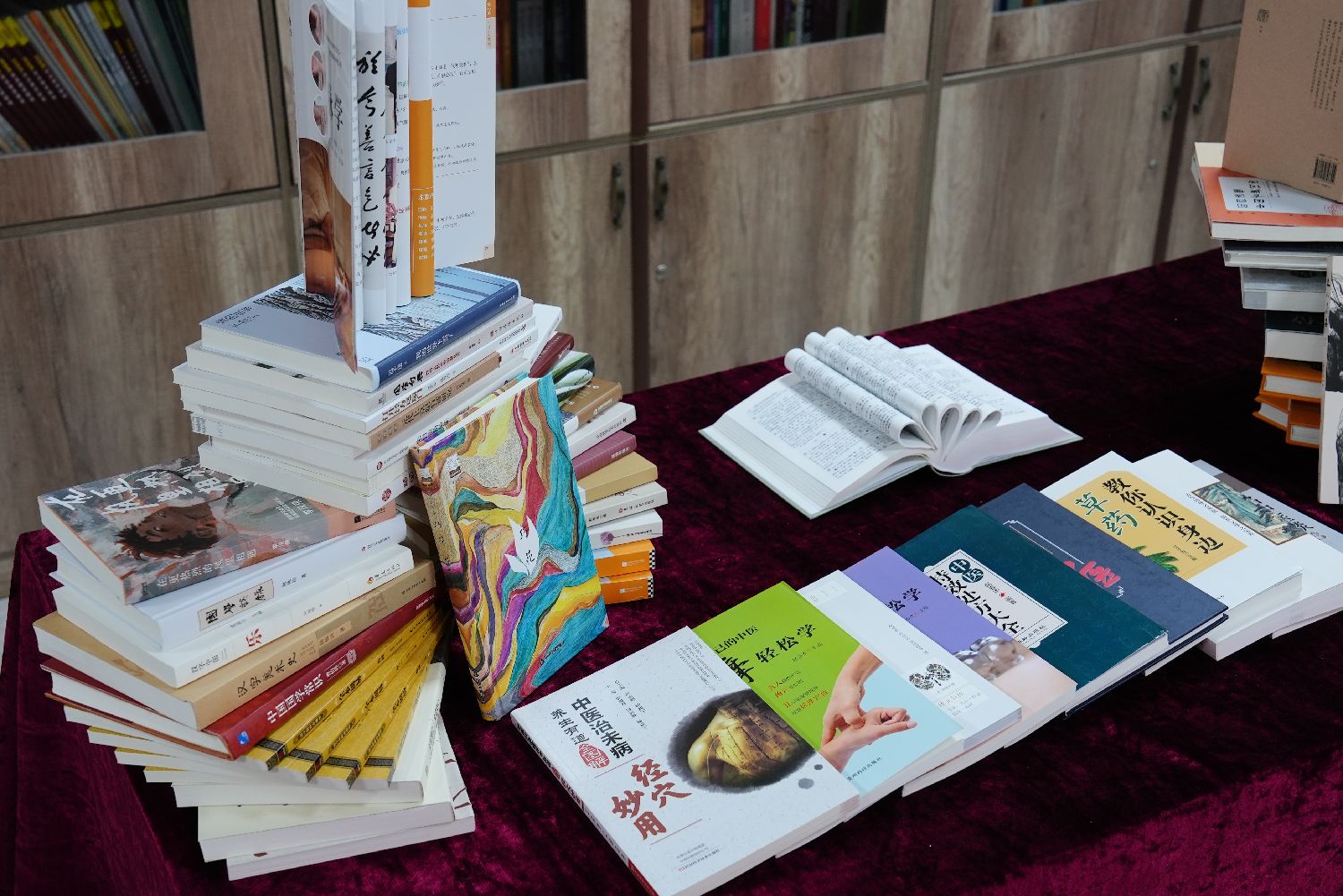 近日,塔吉克斯坦中文图书馆在塔吉克斯坦民族大学孔子学院开馆。图为开馆当日,现场展示的馆藏书籍。(图片来源:中新社/南京图书馆供图)
