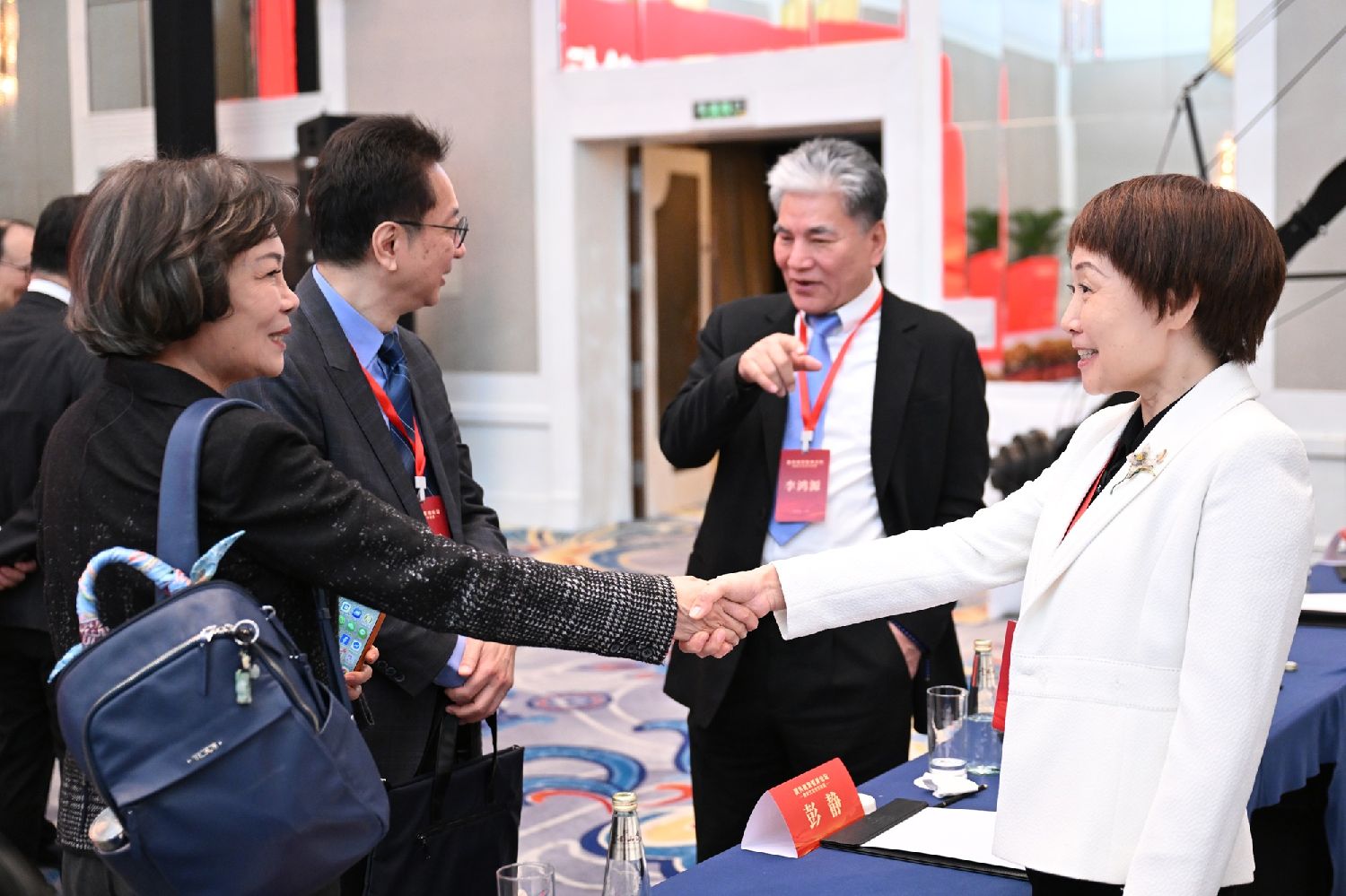 2月3日,国共两党智库论坛在北京举行,与会嘉宾握手致意。(图片来源:中新社)