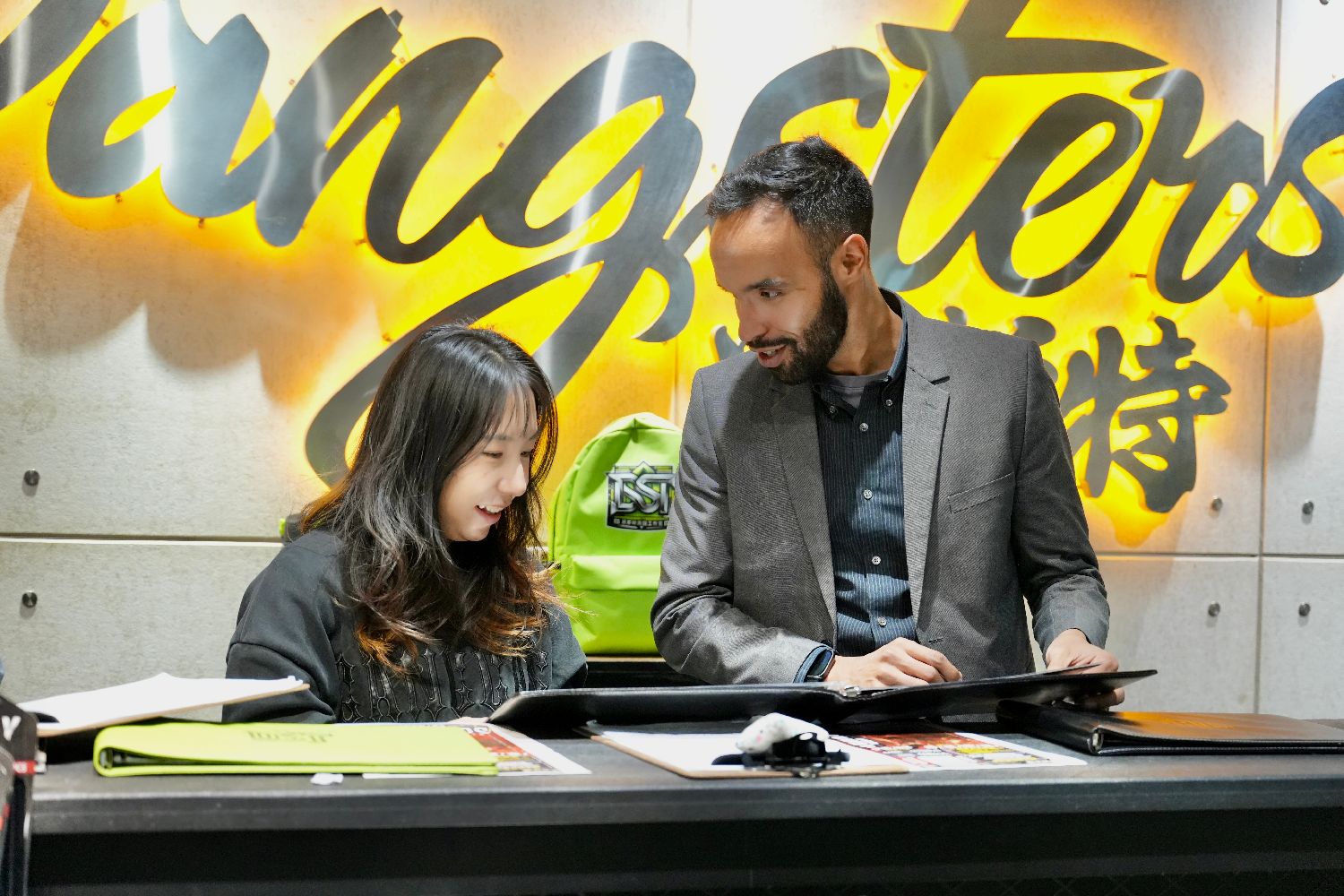 2月11日,老米在位于昆明的街舞工作室中与同事沟通工作。(图片来源:中新社)