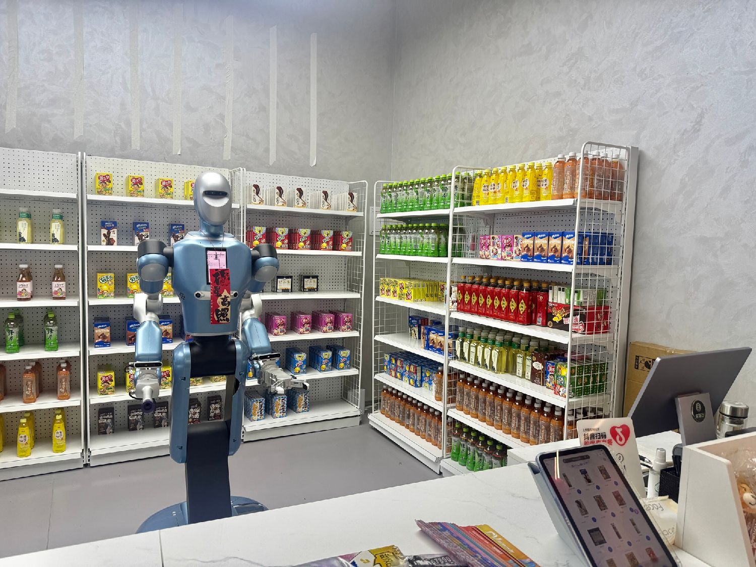 2月27日,武汉光谷人形机器人7S店的一台机器人正在“经营”小卖部。(图片来源:中新社)