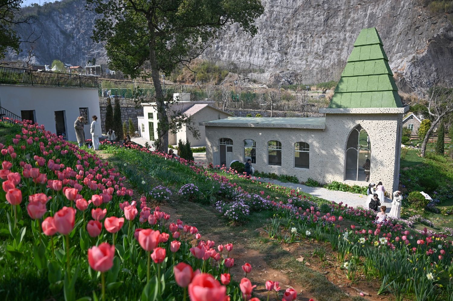 浙江杭州西湖区一处由繁花和欧式建筑等组成的花园迎来最佳观赏期,其浪漫唯美的花境吸引不少年轻游客打卡。(图片来源:中新社)