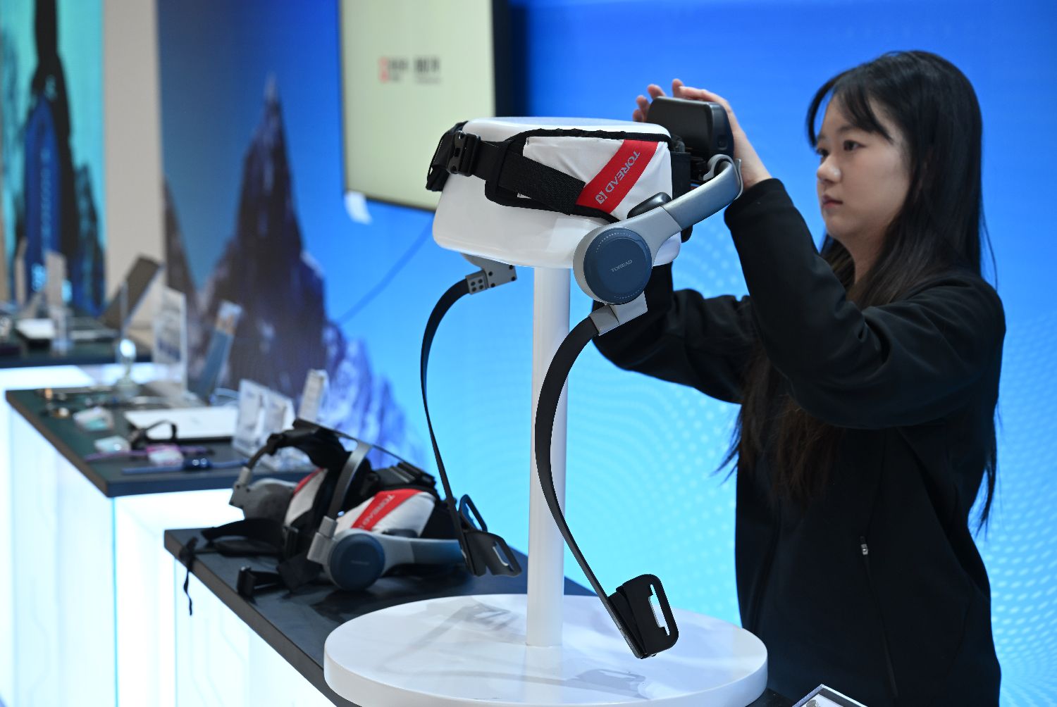 3月26日,北京,工作人员整理新发布的探路者第二代智能运动外骨骼。(图片来源:中新社)